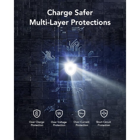 This is a power bank with an in-built protection system, protecting the power bank against over current and short circuit. It'll automatically turn itself off if short circuit or overloading occurs.