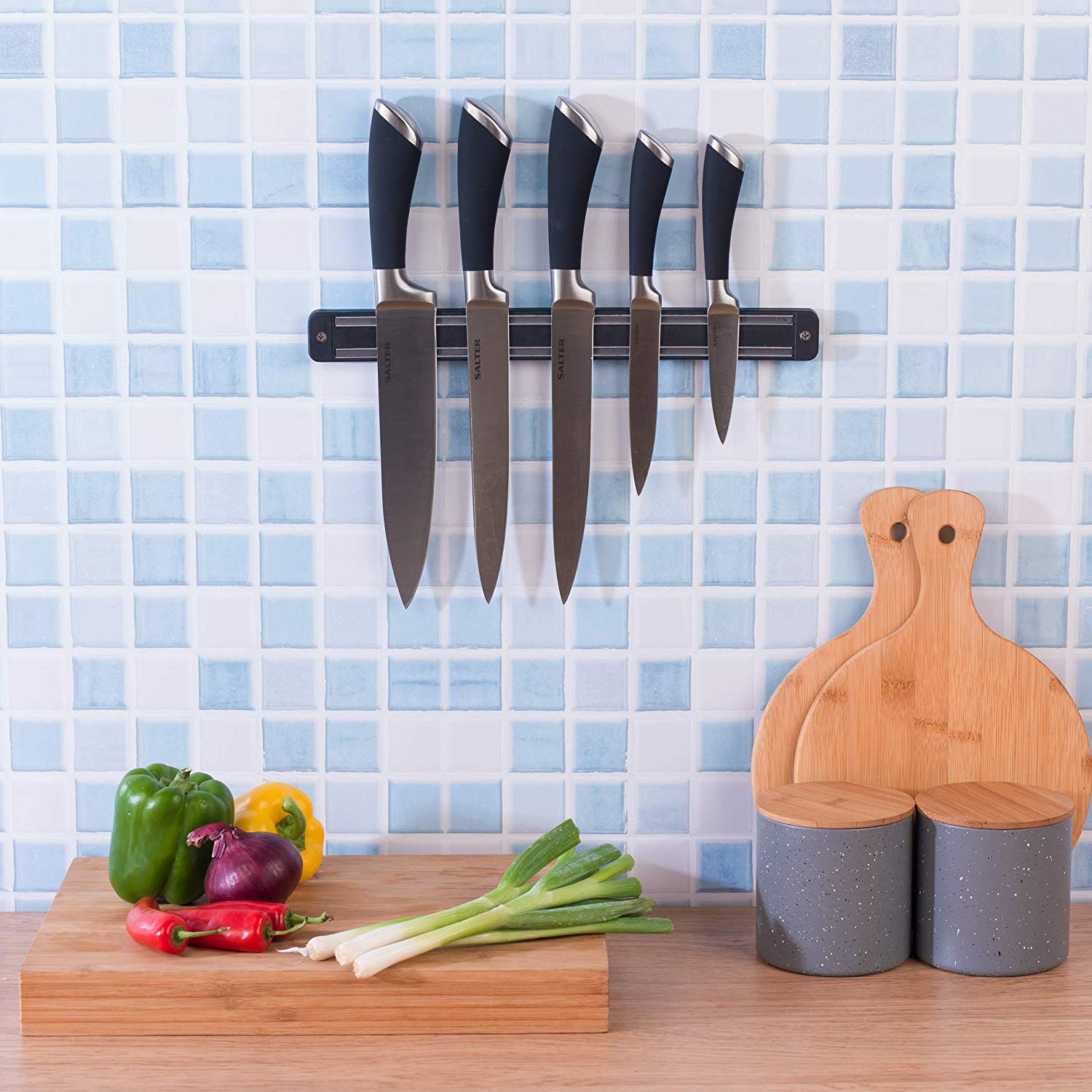For very convenient, smart but simple storage, the magnetic knife rack simply fixes to your wall for incredibly easy access to all of your knives whilst also being neatly displayed. It looks clean, smart and will safely hold your knives while adding modern style to your kitchen.