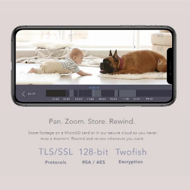 Continuous recording or motion detected recording is available. It supports a Micro SD card or 7-day Cloud Storage (provided by Amazon Web Services). For more details, check Nooie’s FAQ section at Nooie.